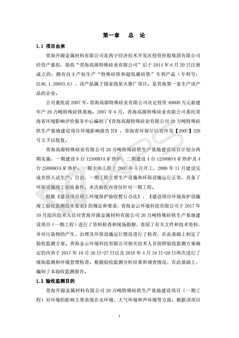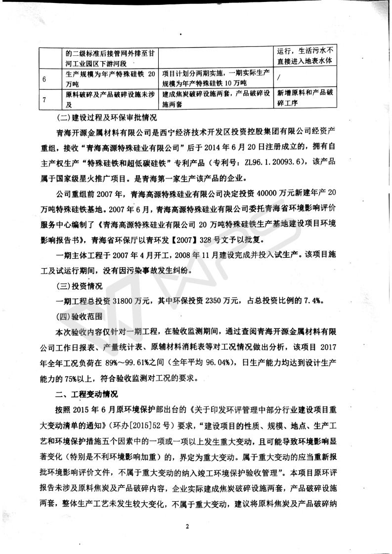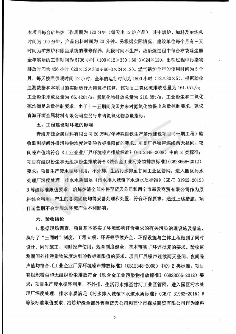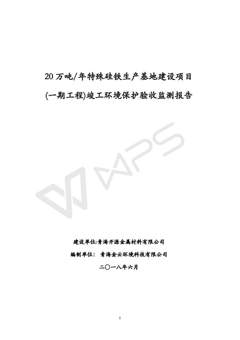 青海開源金屬材料有限公司20萬(wàn)噸特殊硅鐵生產(chǎn)基地建設(shè)項(xiàng)目(一期工程)竣工環(huán)境保護(hù)驗(yàn)收?qǐng)?bào)告書會(huì)后修改20180521