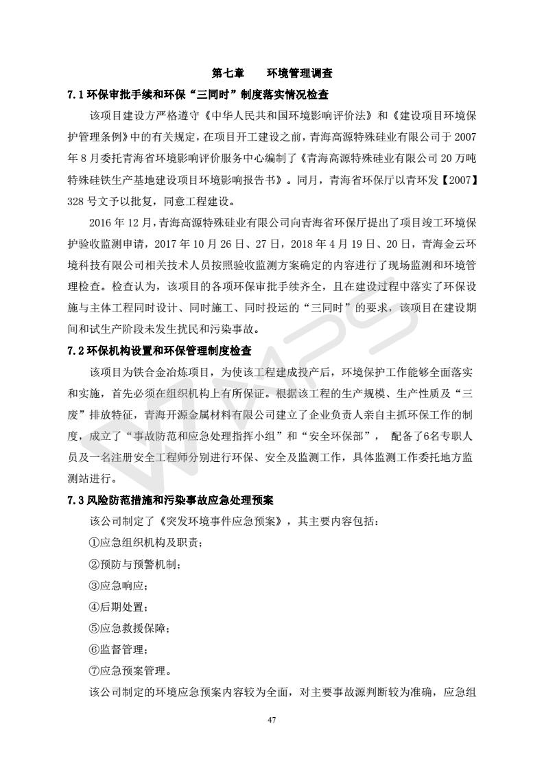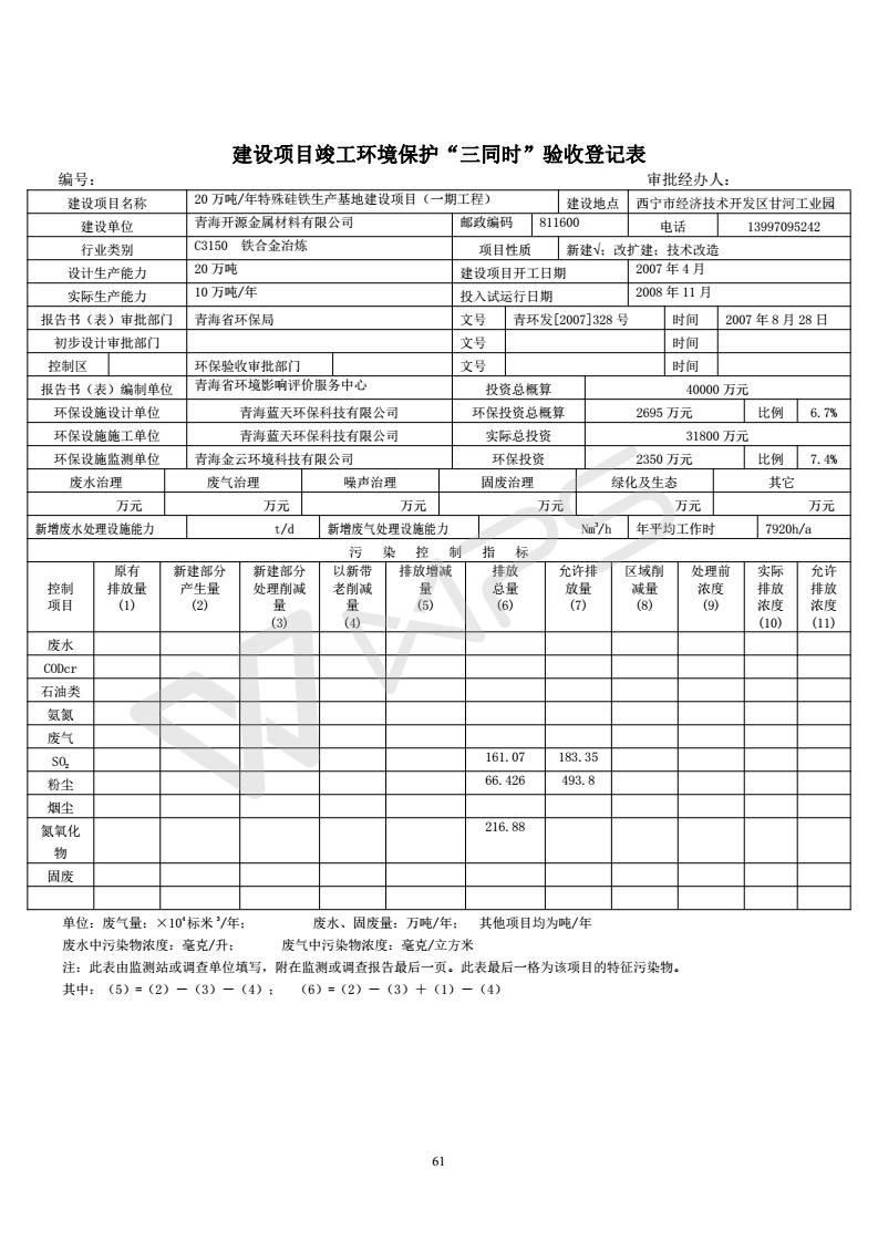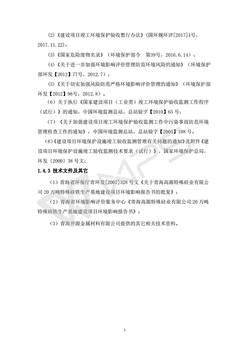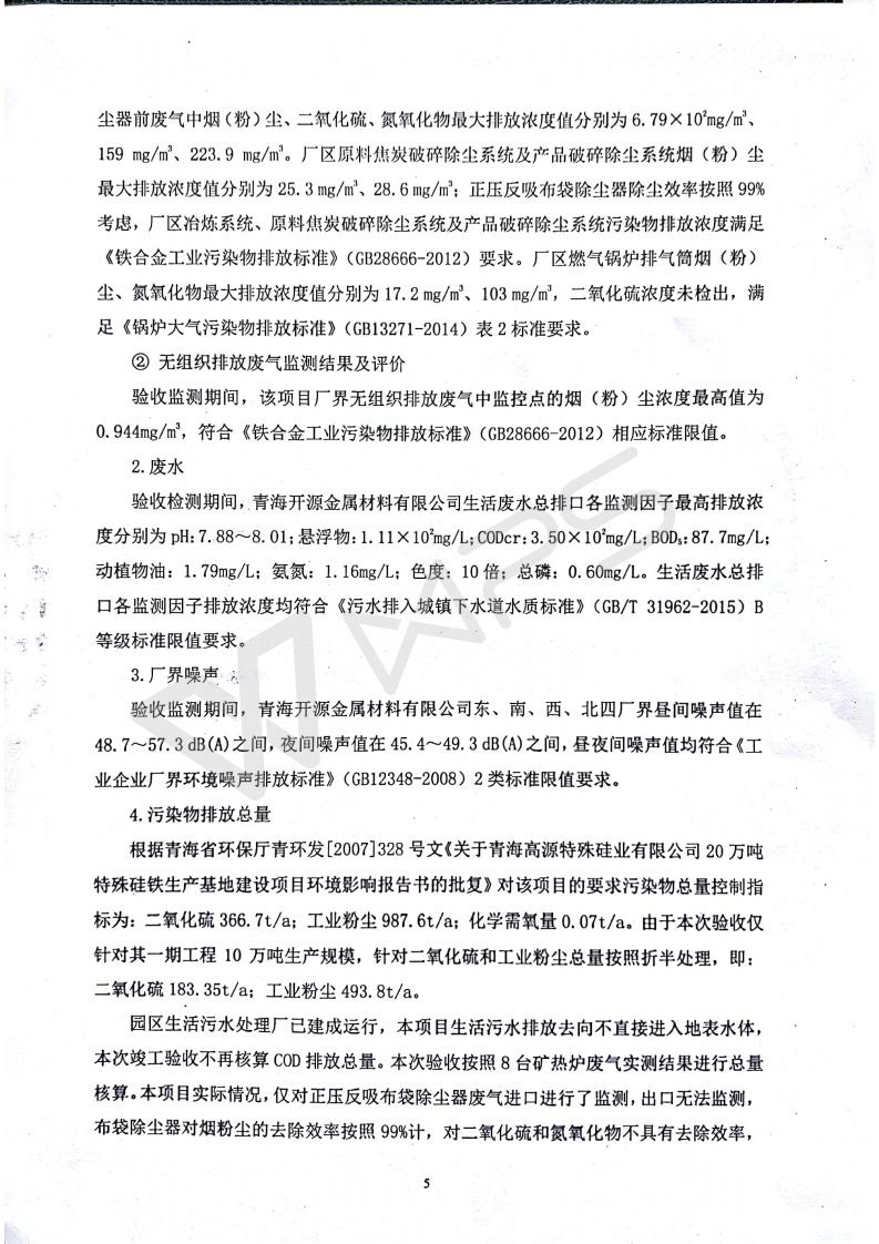 青海開源金屬材料有限公司20萬(wàn)噸特殊硅鐵生產(chǎn)基地建設(shè)項(xiàng)目(一期工程)竣工環(huán)境保護(hù)驗(yàn)收?qǐng)?bào)告書會(huì)后修改20180521