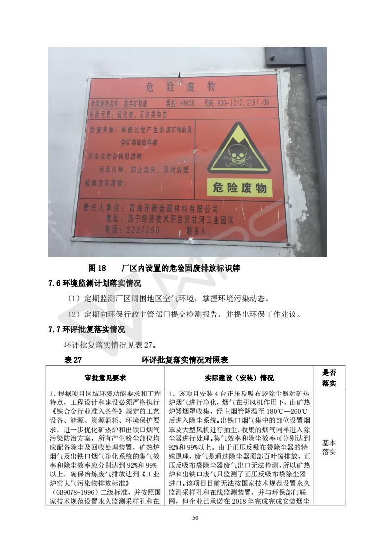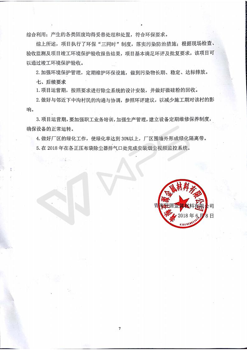 2018年1月11日,青海開源金屬材料有限公司組織召開20萬(wàn)噸/年特殊硅鐵生產(chǎn)基地建設(shè)項(xiàng)目(一期工程)竣工環(huán)境保護(hù)驗(yàn)收會(huì)。 青海開源金屬材料有限公司20萬(wàn)噸特殊硅鐵生產(chǎn)基地建設(shè)項(xiàng)目(一期工程)驗(yàn)收組意見.