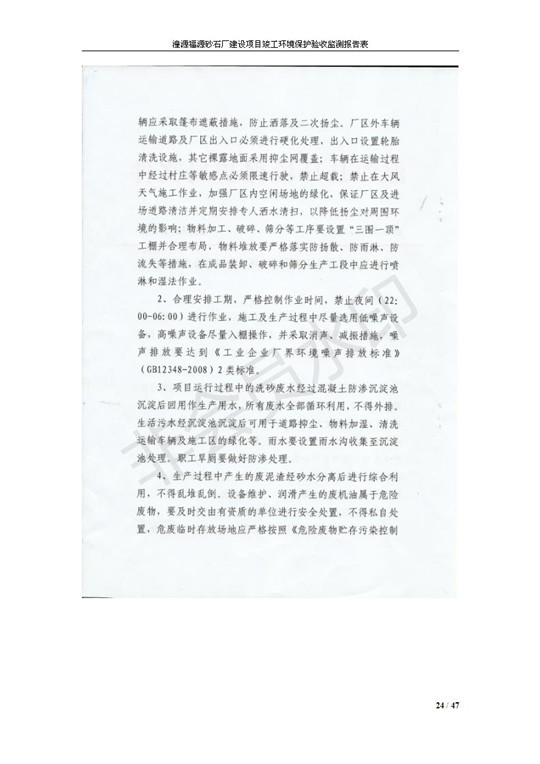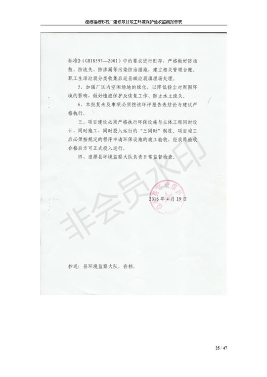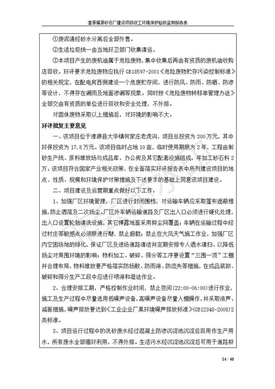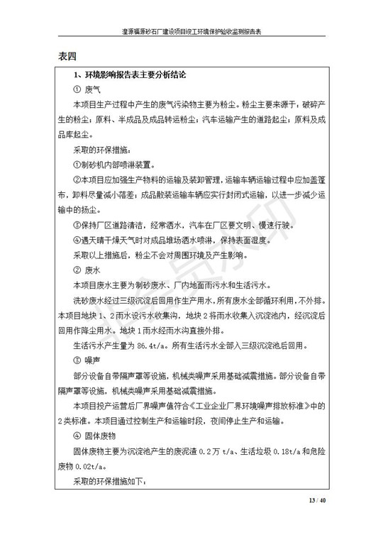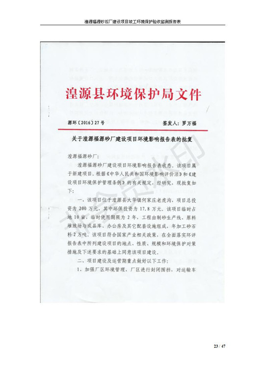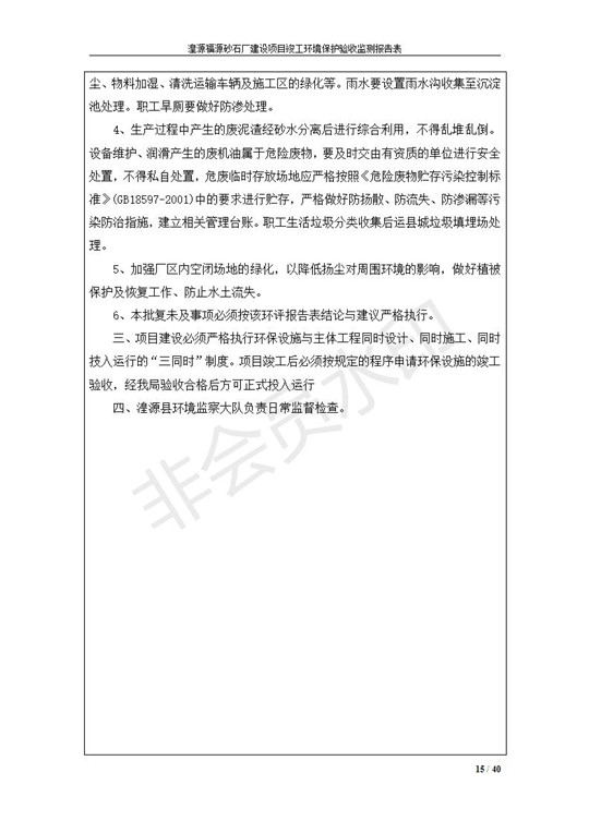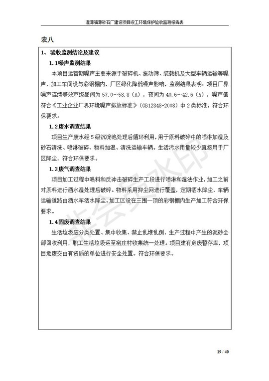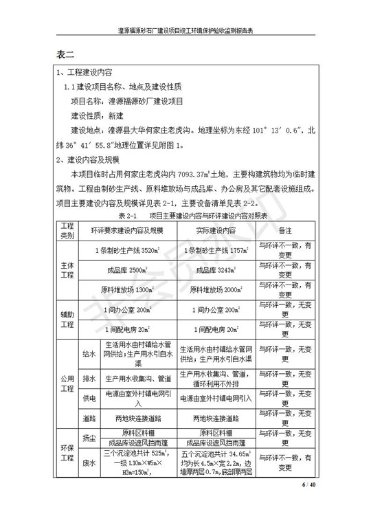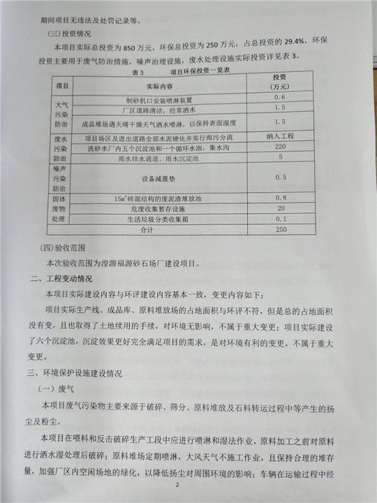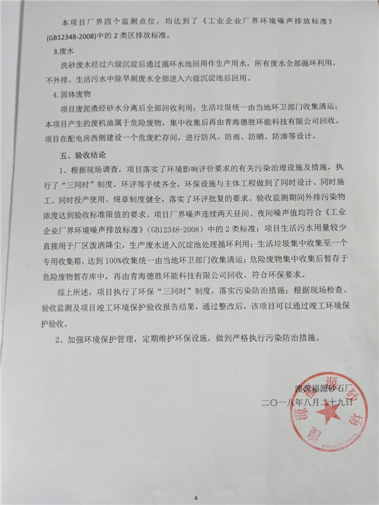 根據(jù)中華人民共和國國務(wù)院令第253號(hào)《建設(shè)項(xiàng)目環(huán)境保護(hù)管理?xiàng)l例》(中華人民共和國國務(wù)院令第682號(hào)《國務(wù)院關(guān)于修改〈建設(shè)項(xiàng)目環(huán)境保護(hù)管理?xiàng)l例〉的決定》和《建設(shè)項(xiàng)目竣工環(huán)境保護(hù)驗(yàn)收暫行辦法》,嚴(yán)格依照有關(guān)法律法規(guī),建設(shè)項(xiàng)目環(huán)境保護(hù)設(shè)施驗(yàn)收技術(shù)規(guī)范,本項(xiàng)目環(huán)評報(bào)告表和環(huán)保審批部門審批意見以及企業(yè)自行驗(yàn)收相關(guān)要求等對本項(xiàng)目進(jìn)行驗(yàn)收,本項(xiàng)目符合環(huán)保驗(yàn)收條件,可以通過環(huán)保驗(yàn)收。 湟源福砂廠建設(shè)項(xiàng)目竣工環(huán)境保護(hù)驗(yàn)收意見