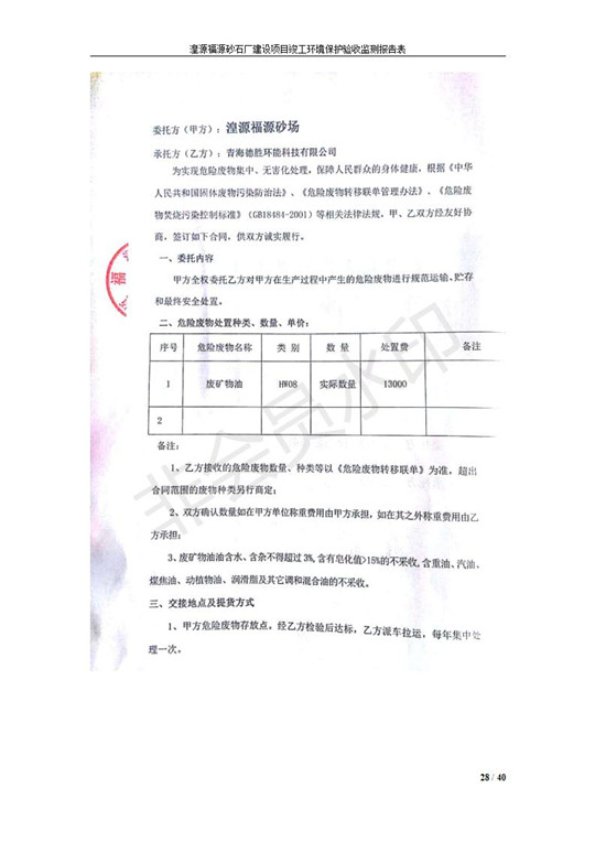 湟源福砂廠建設(shè)項(xiàng)目竣工環(huán)境保護(hù)驗(yàn)收發(fā)布日期:(2018-9-6) 點(diǎn)擊次數(shù):2160 |