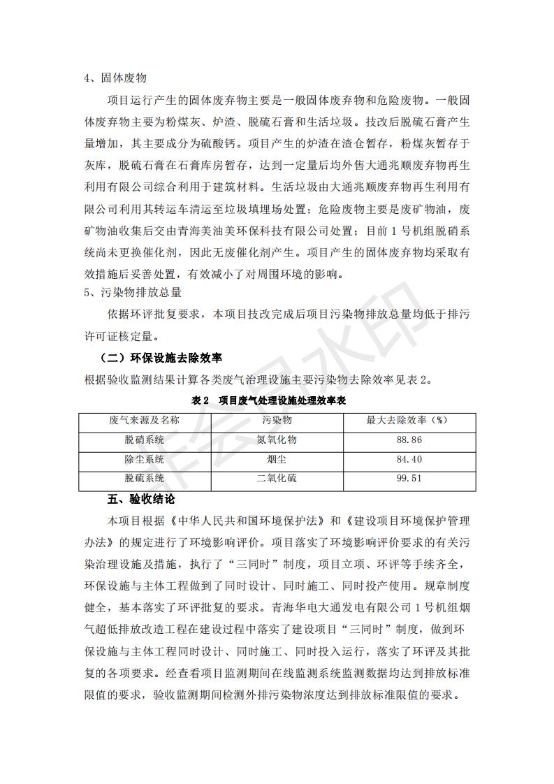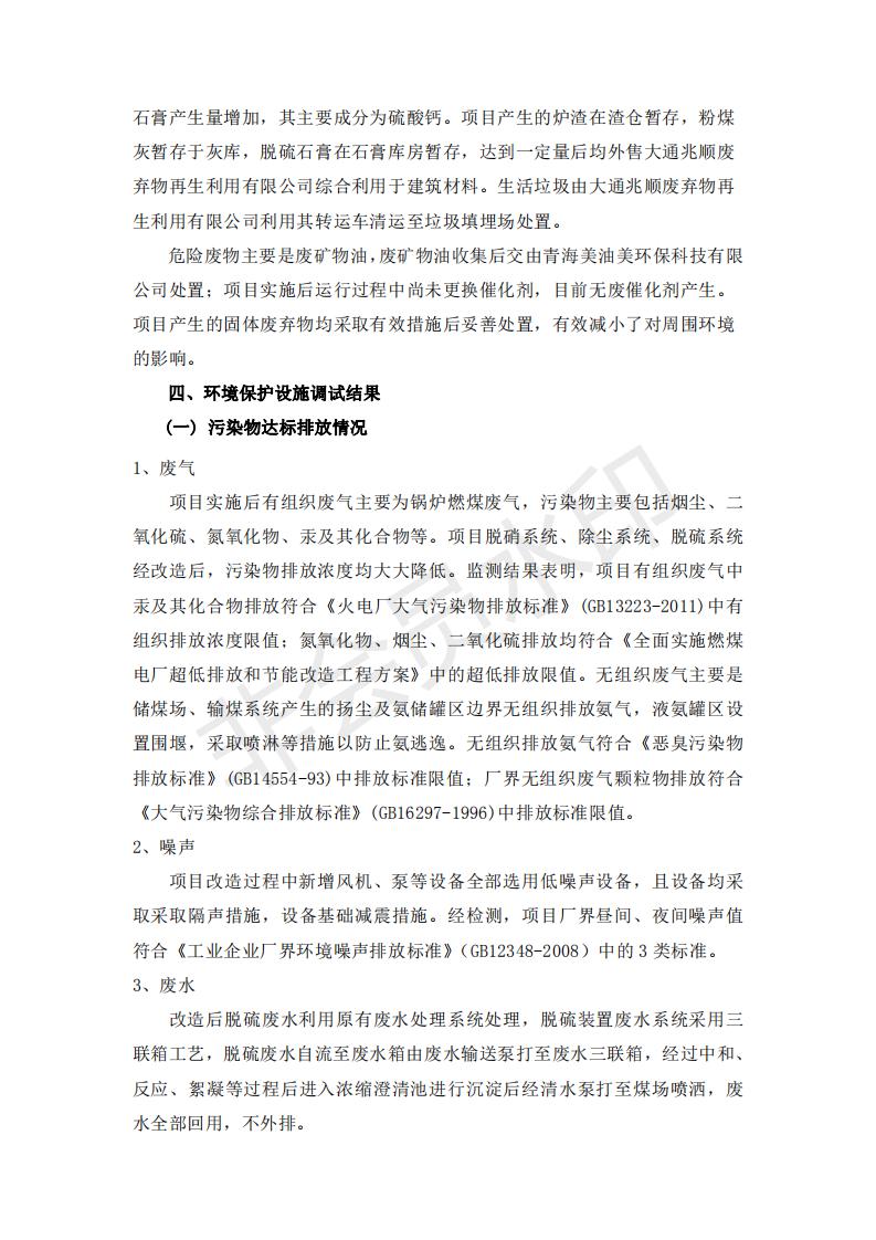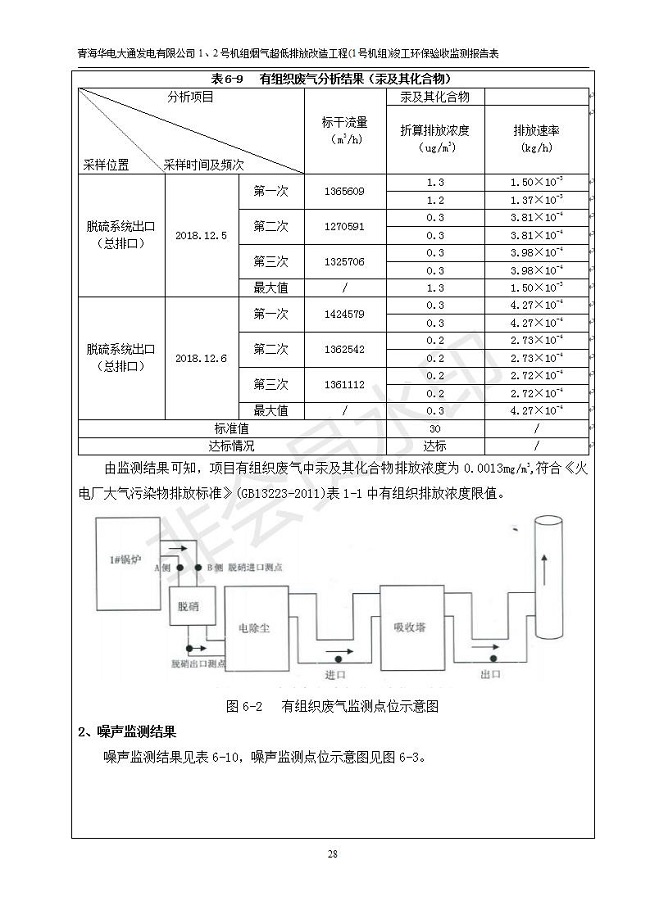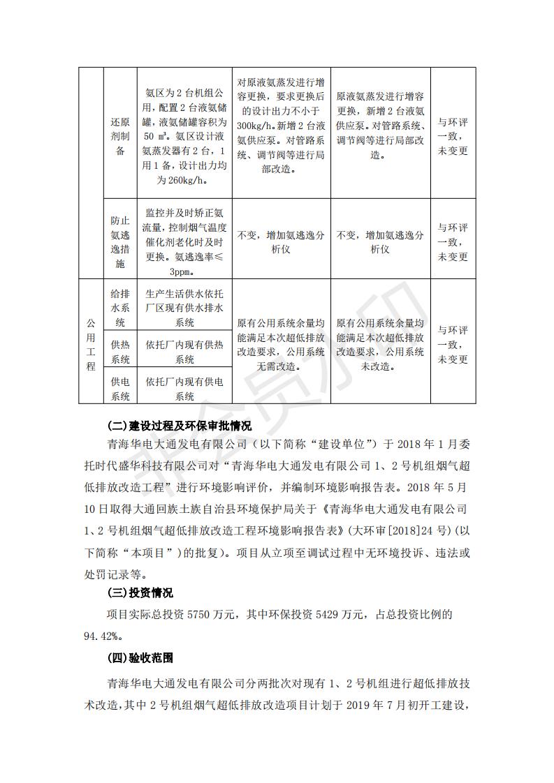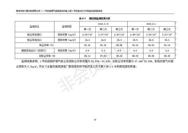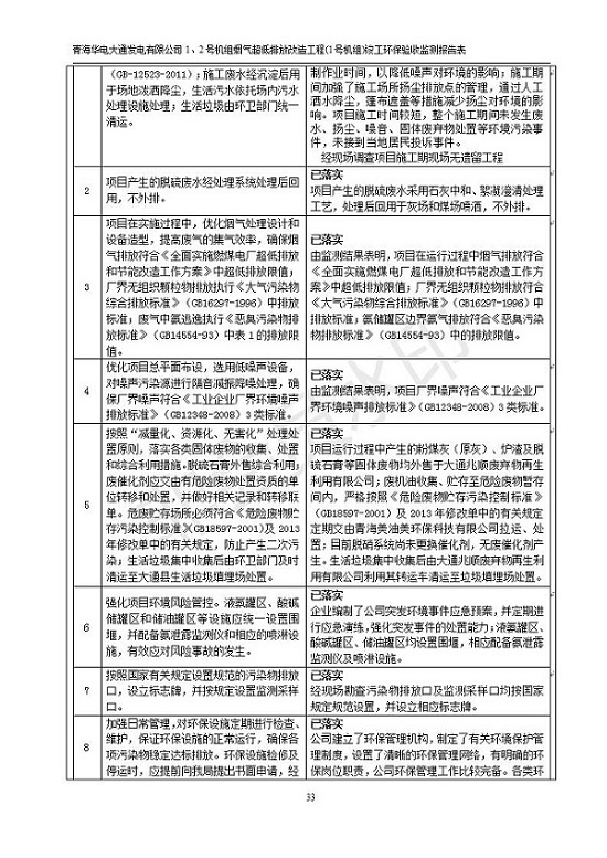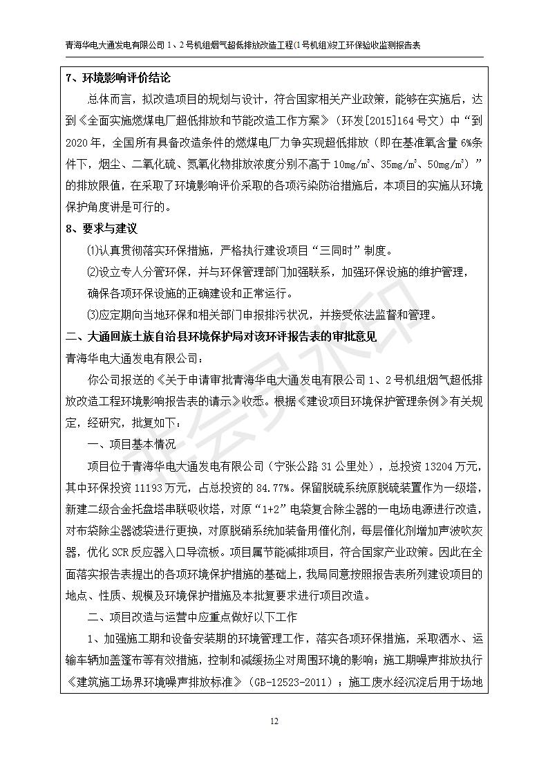 根據(jù)中華人民共和國(guó)國(guó)務(wù)院令第682號(hào)《國(guó)務(wù)院關(guān)于修改〈建設(shè)項(xiàng)目環(huán)境保護(hù)管理?xiàng)l例〉的決定》和《建設(shè)項(xiàng)目竣工環(huán)境保護(hù)驗(yàn)收暫行辦法》(國(guó)務(wù)院令682號(hào)),青海華電大通發(fā)電有限公司1、2號(hào)機(jī)組煙氣超低排放改造工程(1號(hào)機(jī)組) (包括竣工環(huán)境保護(hù)驗(yàn)收監(jiān)測(cè)報(bào)告表和驗(yàn)收意見(jiàn))公示如下。 一、項(xiàng)目名稱:青海華電大通發(fā)電有限公司1、2號(hào)機(jī)組煙氣超低排放改造工程(1號(hào)機(jī)組) 竣工環(huán)境保護(hù)驗(yàn)收監(jiān)測(cè)報(bào)告表 二、地點(diǎn):青海省西寧市大通縣寧張公路31公里處 三、建設(shè)單位:青海華電大通發(fā)電有限公司 四、建設(shè)內(nèi)容:1號(hào)機(jī)組煙氣超低排放改造,1號(hào)機(jī)組改造內(nèi)容為脫硫系統(tǒng)保留原脫硫裝置作為一級(jí)塔,新建二級(jí)合金托盤塔串聯(lián)吸收塔;對(duì)原“1+2”電袋復(fù)合除塵器的一電場(chǎng)電源進(jìn)行改造,對(duì)布袋除塵器濾袋進(jìn)行更換;對(duì)原脫硝系統(tǒng)選擇性催化還原法(SCR)脫硝工藝加裝備用催化劑,每層催化劑增加聲波吹灰器,優(yōu)化SCR反應(yīng)器入口導(dǎo)流板。 五、聯(lián)系人:張工 六、聯(lián)系電 話:0971-6515411 七、公示時(shí)間:二〇一九年二月十三日至二〇一九年三月十二日 公示期間,對(duì)上述公示內(nèi)容如有異議,請(qǐng)以書(shū)面形式反饋,個(gè)人須署真實(shí)姓名,單位須加蓋公章。