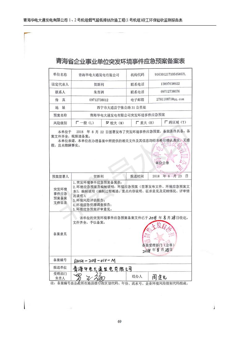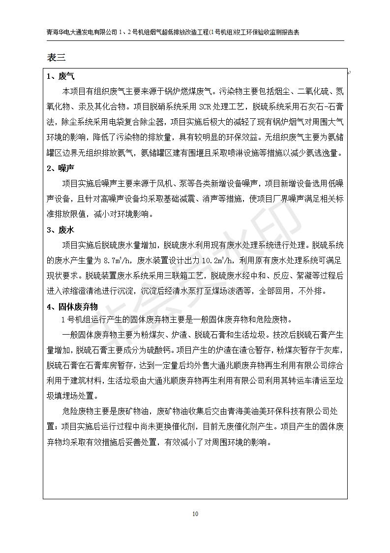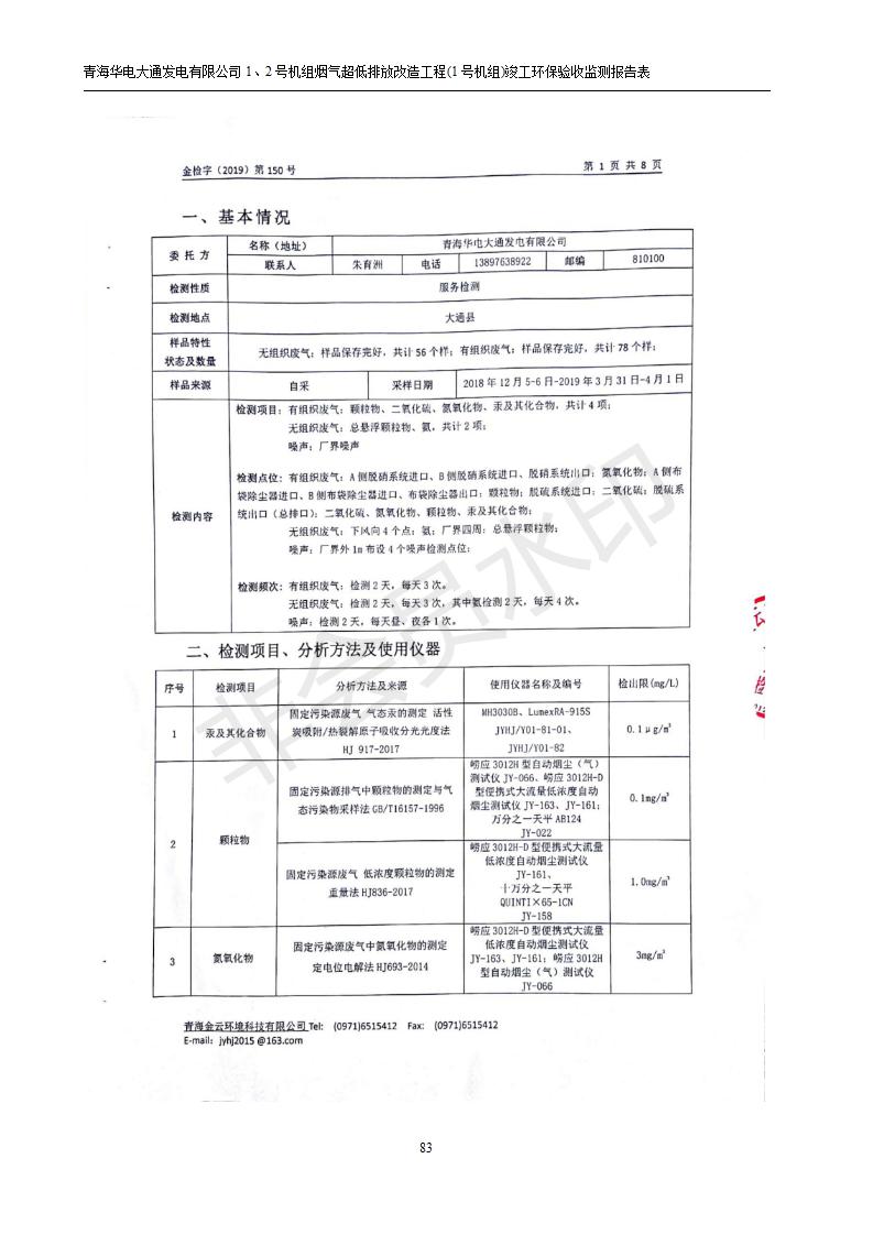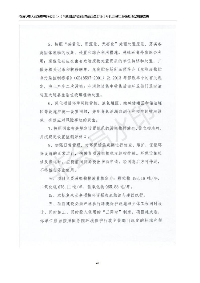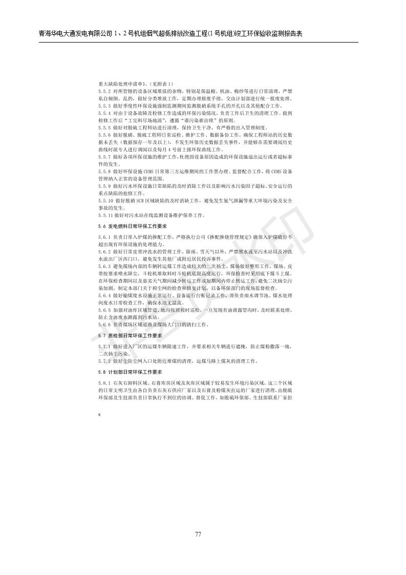 根據(jù)中華人民共和國(guó)國(guó)務(wù)院令第682號(hào)《國(guó)務(wù)院關(guān)于修改〈建設(shè)項(xiàng)目環(huán)境保護(hù)管理?xiàng)l例〉的決定》和《建設(shè)項(xiàng)目竣工環(huán)境保護(hù)驗(yàn)收暫行辦法》(國(guó)務(wù)院令682號(hào)),青海華電大通發(fā)電有限公司1、2號(hào)機(jī)組煙氣超低排放改造工程(1號(hào)機(jī)組) (包括竣工環(huán)境保護(hù)驗(yàn)收監(jiān)測(cè)報(bào)告表和驗(yàn)收意見(jiàn))公示如下。 一、項(xiàng)目名稱:青海華電大通發(fā)電有限公司1、2號(hào)機(jī)組煙氣超低排放改造工程(1號(hào)機(jī)組) 竣工環(huán)境保護(hù)驗(yàn)收監(jiān)測(cè)報(bào)告表 二、地點(diǎn):青海省西寧市大通縣寧張公路31公里處 三、建設(shè)單位:青海華電大通發(fā)電有限公司 四、建設(shè)內(nèi)容:1號(hào)機(jī)組煙氣超低排放改造,1號(hào)機(jī)組改造內(nèi)容為脫硫系統(tǒng)保留原脫硫裝置作為一級(jí)塔,新建二級(jí)合金托盤塔串聯(lián)吸收塔;對(duì)原“1+2”電袋復(fù)合除塵器的一電場(chǎng)電源進(jìn)行改造,對(duì)布袋除塵器濾袋進(jìn)行更換;對(duì)原脫硝系統(tǒng)選擇性催化還原法(SCR)脫硝工藝加裝備用催化劑,每層催化劑增加聲波吹灰器,優(yōu)化SCR反應(yīng)器入口導(dǎo)流板。 五、聯(lián)系人:張工 六、聯(lián)系電 話:0971-6515411 七、公示時(shí)間:二〇一九年二月十三日至二〇一九年三月十二日 公示期間,對(duì)上述公示內(nèi)容如有異議,請(qǐng)以書(shū)面形式反饋,個(gè)人須署真實(shí)姓名,單位須加蓋公章。