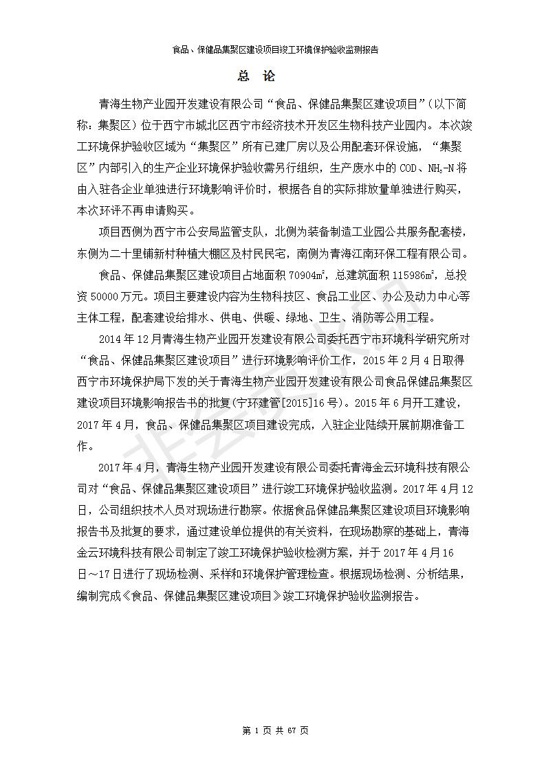 食品、保健品集聚區(qū)建設項目竣工環(huán)境保護驗收監(jiān)測報告公示發(fā)布日期:(2019-3-11) 點擊次數(shù):2167 |