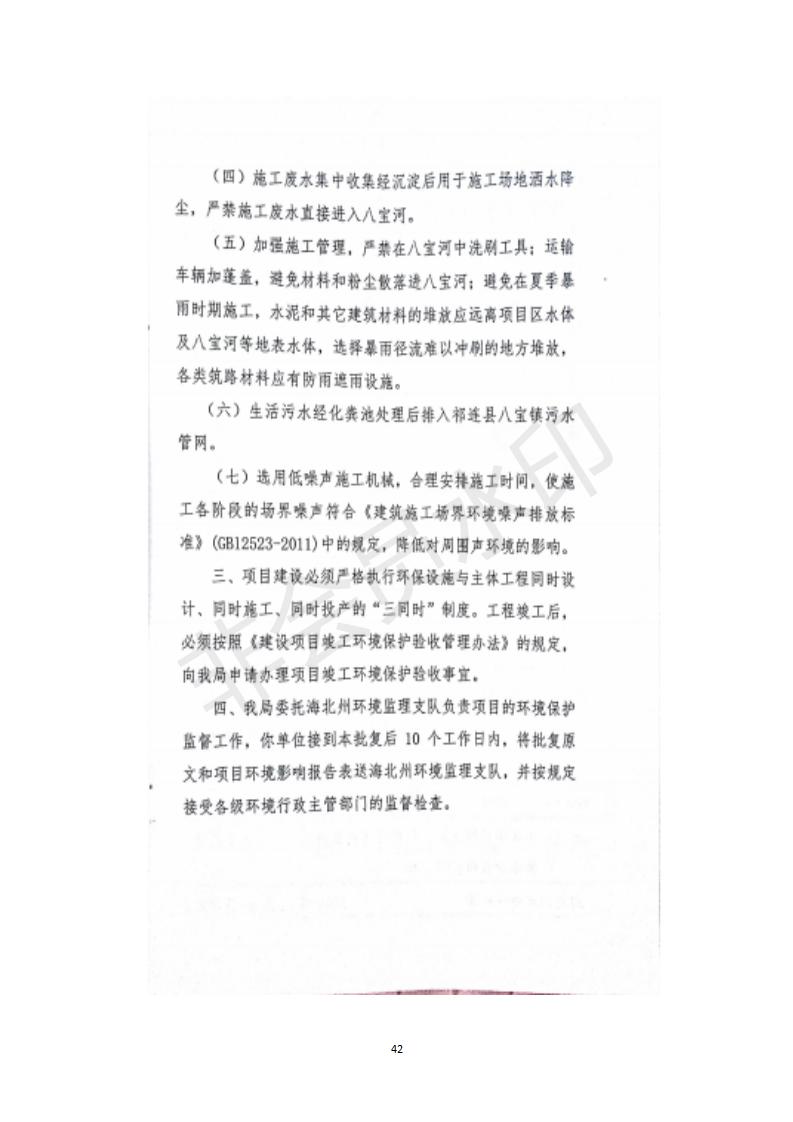 根據(jù)中華人民共和國(guó)務(wù)院令第682號(hào)《國(guó)務(wù)院關(guān)于修改〈建設(shè)項(xiàng)目環(huán)境保護(hù)管理?xiàng)l例〉的決定》和《建設(shè)項(xiàng)目竣工環(huán)境保護(hù)驗(yàn)收暫行辦法》(國(guó)務(wù)院令682號(hào)),祁連縣二寺灘公園項(xiàng)目竣工環(huán)境保護(hù)驗(yàn)收內(nèi)容(包括竣工環(huán)境保護(hù)驗(yàn)收調(diào)查表和驗(yàn)收意見(jiàn))公示如下。 一、項(xiàng)目名稱(chēng):祁連縣二寺灘公園項(xiàng)目竣工環(huán)境保護(hù)驗(yàn)收調(diào)查表 二、地點(diǎn):祁連縣八寶鎮(zhèn)城東生態(tài)組團(tuán)片區(qū) 三、建設(shè)單位:祁連縣環(huán)境保護(hù)和林業(yè)局 四、建設(shè)內(nèi)容:公園廣場(chǎng)入口、水景景觀、輔助工程、綠化建設(shè) 五、公示時(shí)間:二〇一九年三月十一日至二〇一九年四月八日 六、聯(lián)系人:張工 公示期間,對(duì)上述公示內(nèi)容如有異議,請(qǐng)以書(shū)面形式反饋,個(gè)人須署真實(shí)姓名,單位須加蓋公章。