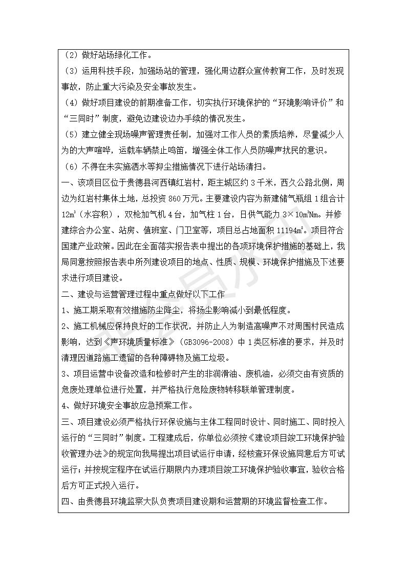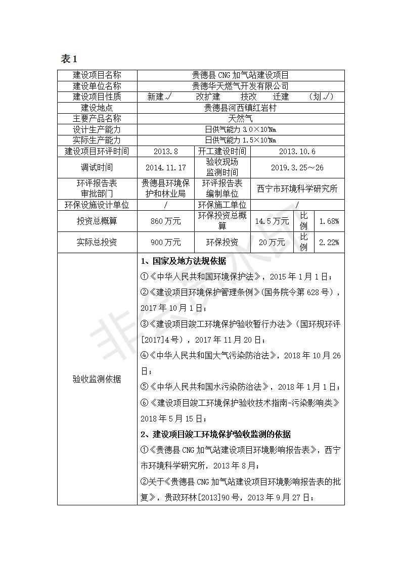根據(jù)中華人民共和國務(wù)院令第682號(hào)《國務(wù)院關(guān)于修改〈建設(shè)項(xiàng)目環(huán)境保護(hù)管理?xiàng)l例〉的決定》和《建設(shè)項(xiàng)目竣工環(huán)境保護(hù)驗(yàn)收暫行辦法》(國務(wù)院令682號(hào)),青藏高原特色生物資源綠色開發(fā)工程研究中心建設(shè)項(xiàng)目竣工環(huán)境保護(hù)驗(yàn)收內(nèi)容(包括竣工環(huán)境保護(hù)驗(yàn)收調(diào)查報(bào)告和驗(yàn)收意見)公示如下: 一、項(xiàng)目名稱:貴德縣CNG加氣站建設(shè)項(xiàng)目 二、地點(diǎn):貴德縣河西鎮(zhèn)紅巖村 三、建設(shè)單位:貴德華天燃?xì)忾_發(fā)有限公司 四、建設(shè)內(nèi)容:日供氣量為1.5×104Nm的加氣站 五、公示時(shí)間:二〇一九年五月二十九日至二〇一九年六月二十五日 六、聯(lián)系人:張工 公示期間,對(duì)上述公示內(nèi)容如有異議,請(qǐng)以書面形式反饋,個(gè)人須署真實(shí)姓名,單位須加蓋公章。