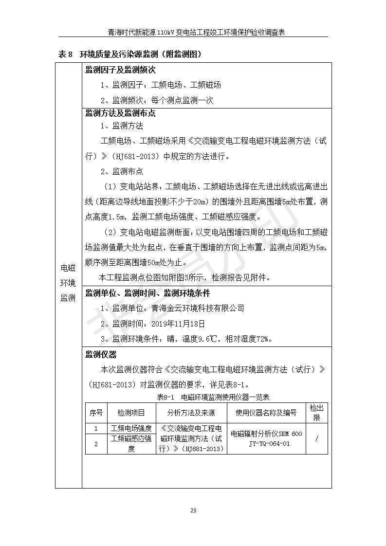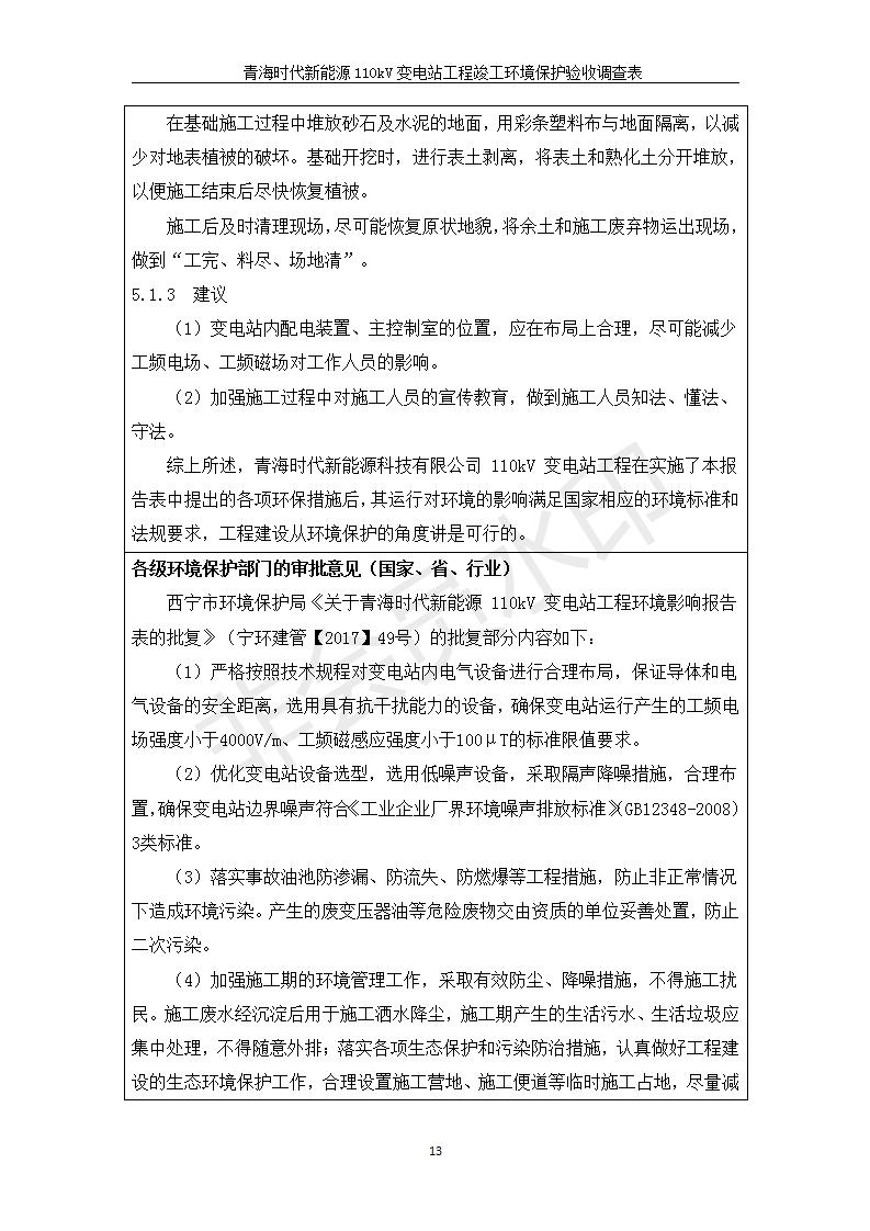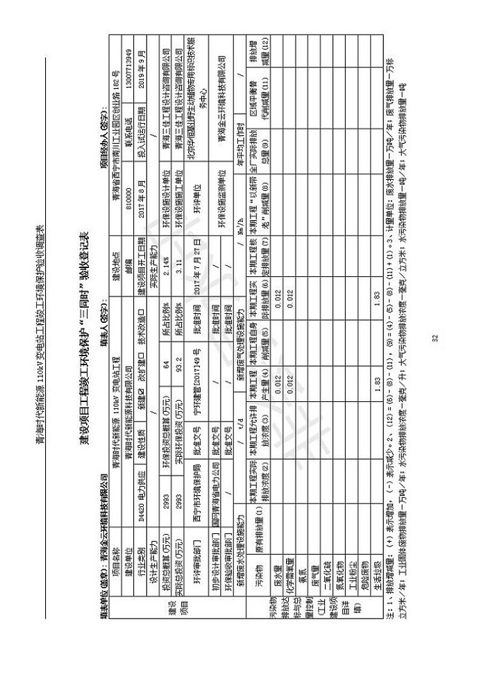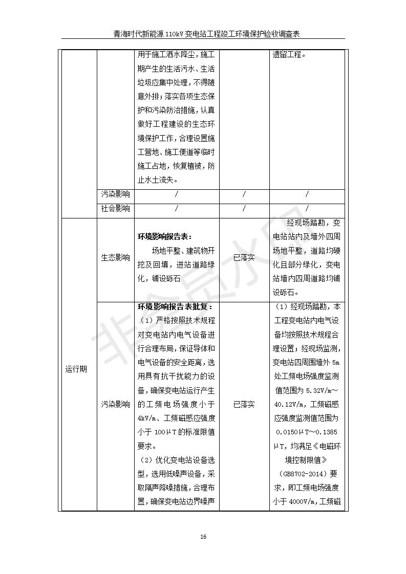 青海時(shí)代新能源110kV變電站工程竣工環(huán)境保護(hù)驗(yàn)收調(diào)查表公示發(fā)布日期:(2020-1-14) 點(diǎn)擊次數(shù):2825 |