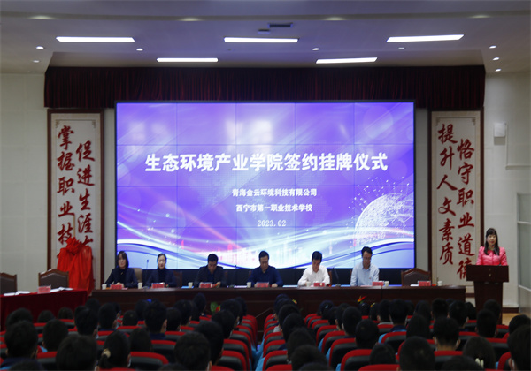 為深入貫徹落實職業(yè)教育現(xiàn)場推進會精神,深化產教融合校企合作,2023年2月23日,西寧市第一職業(yè)技術學校與青海金云環(huán)境科技有限公司隆重舉行校企生態(tài)環(huán)境產業(yè)學院簽約掛牌儀式。西寧市教育局領導,西寧市第一職業(yè)技術學校領導及生態(tài)環(huán)境產業(yè)學院師生,金云科技高層領導出席簽約儀式。儀式由西寧第一職業(yè)技術學校黨委書記、校長金耀東主持。